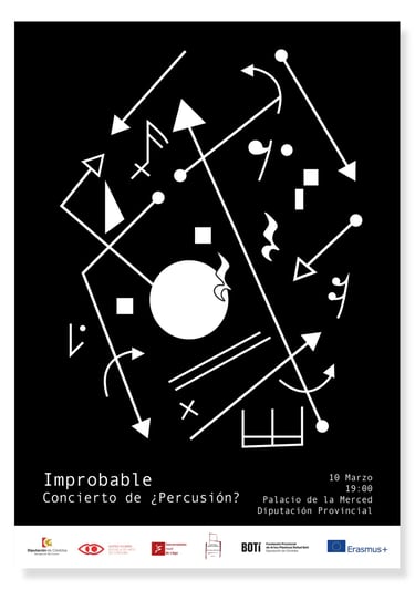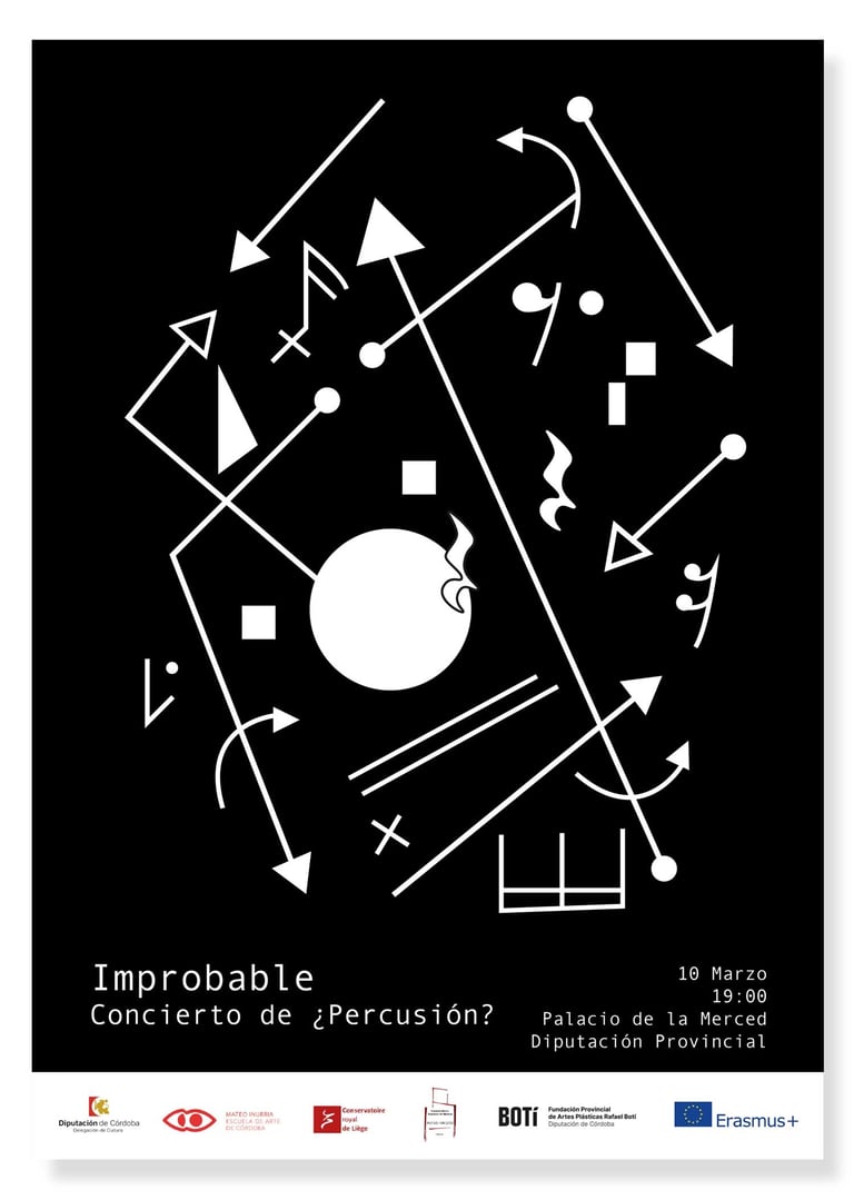 El diseño del cartel se basa en la creación de una composición abstracta y geométrica basada en elementos gráficos propios de las partituras de percusión, ligadas a los movimientos realizados dentro del espacio performático. Estos movimientos y sonidos han inspirado esta composición que pretende poner imagen a lo que de manera improbable pasaría.