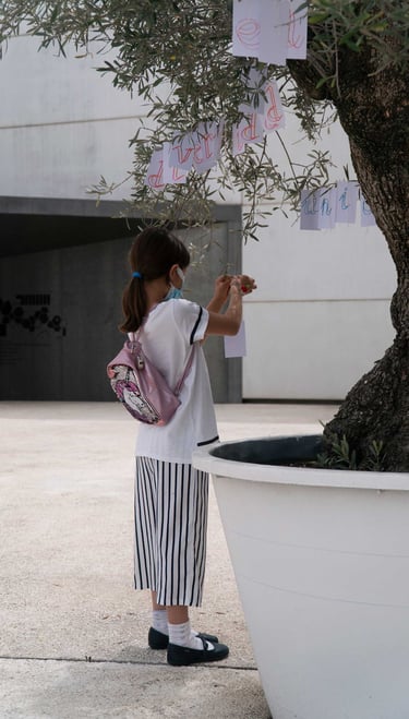 Taller para niños sobre la exposición "Para ver el cielo" y obra "Árbol de los deseos para la paz (1996-2017)" de Yoko Ono en el Centro de Arte Contemporáneo de Córdoba C3A.