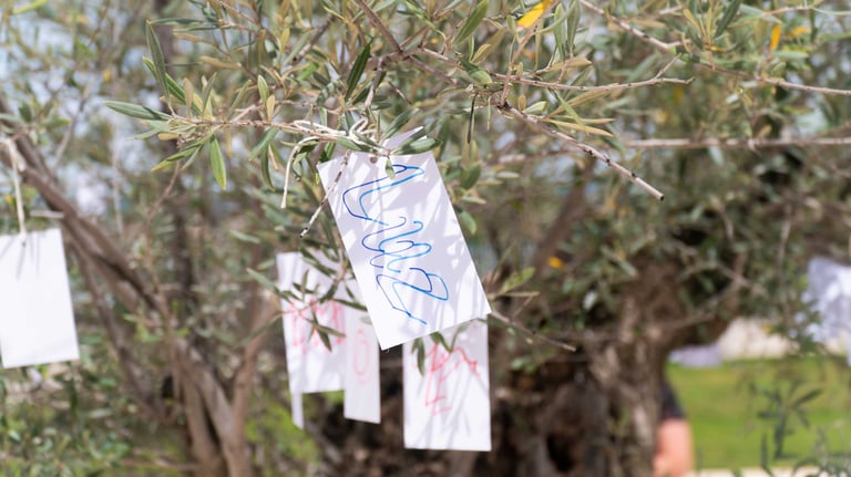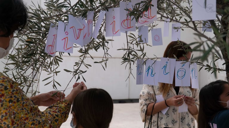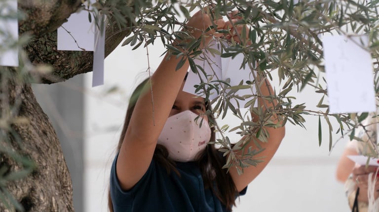 ·Intervenir el ‘Árbol de los Deseos para la Paz’ con palabras para la paz utilizando la técnica de caligrafía aprendida.