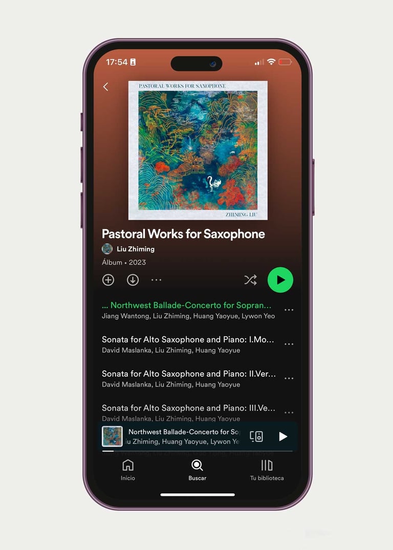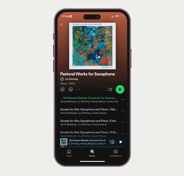 Zhiming Liu estudió en el conservatorio de Boston y es doctorando en el Conservatorio de Cincinnati. Sus piezas tratan sobre naturaleza, el pastoreo y la tradición china. Este es su primer disco, grabado en Cincinnati, Ohio. Su álbum incluye tres piezas, Sonata de Maslanka. El capricho del cisne y Balada del noroeste de Jiang Wantong.